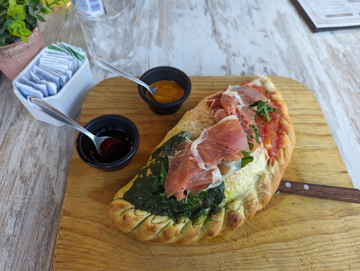 Absolutely stunning food, service and great view on top of that! The food was amazing, the calzone dough was both soft and fluffy yet crispy outside, the presentation was absolutely amazing, and finally the quality of ingredients is top notch! My wife had pasta and she was equally impressed with the flavour! I mean even the starter was amazing! I only regret that I didn't have space to try the dessert!